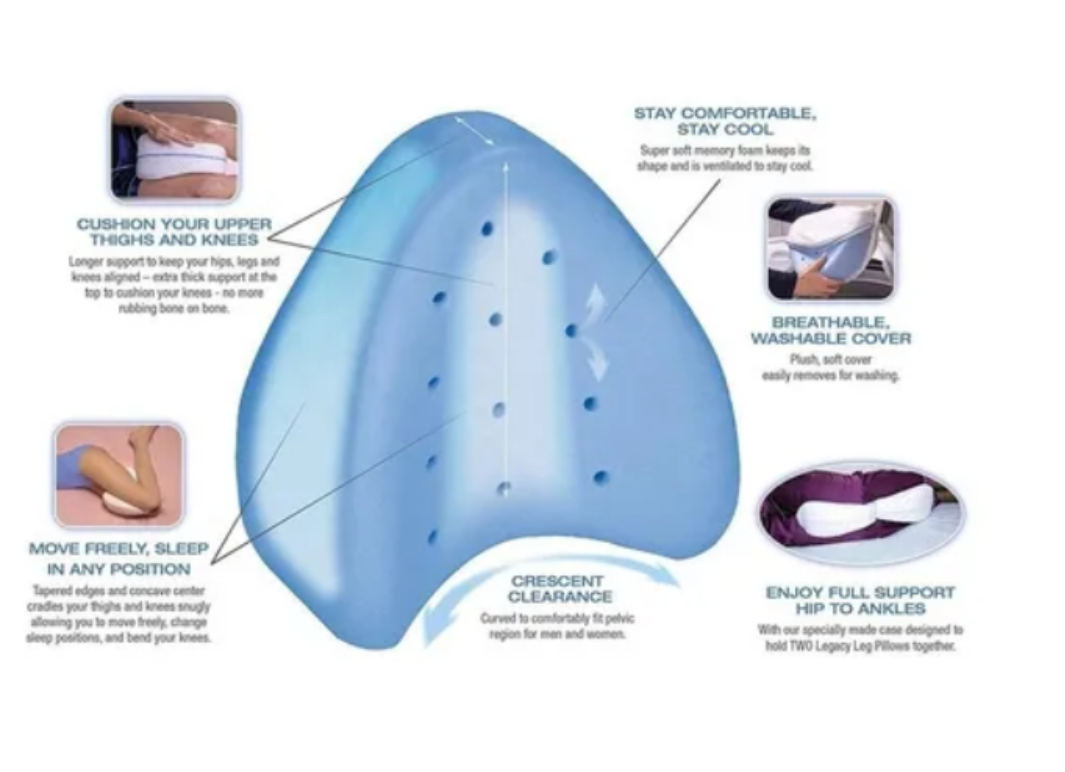 2. La única almohada para las piernas que soporta tanto las piernas como las rodillas-La almohada para las piernas se creó para ayudar a reducir la presión que se produce por una mala postura de sueño. Años más tarde nos damos cuenta de que la amortiguación y el apoyo tanto de las piernas como de las rodillas son importantes para mantener la alineación adecuada para ayudar a reducir el dolor
