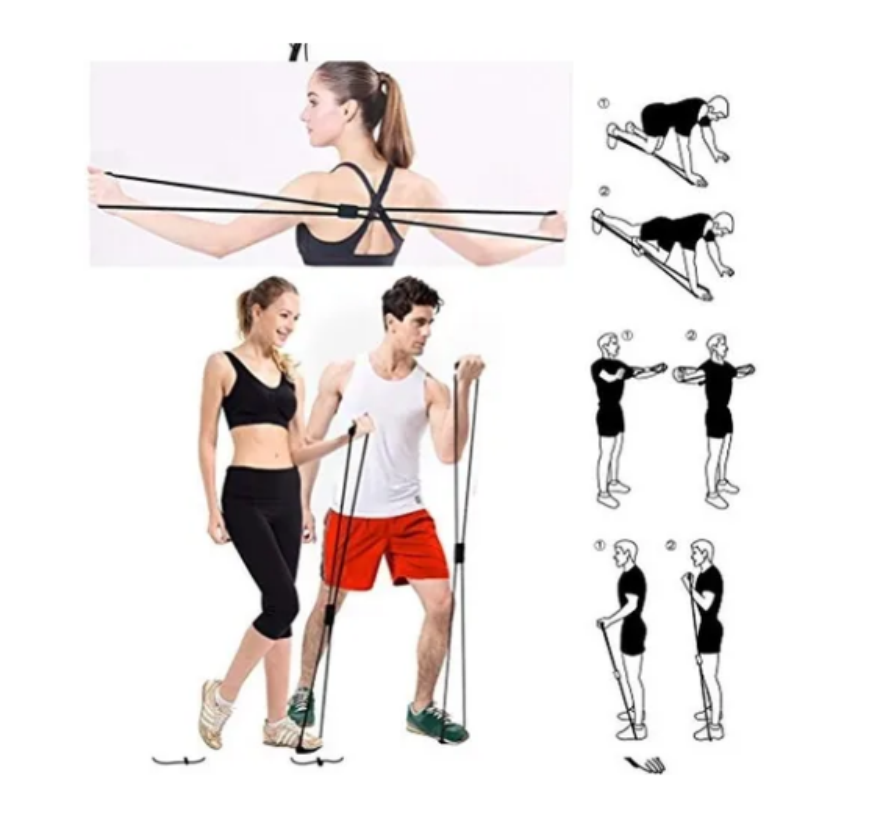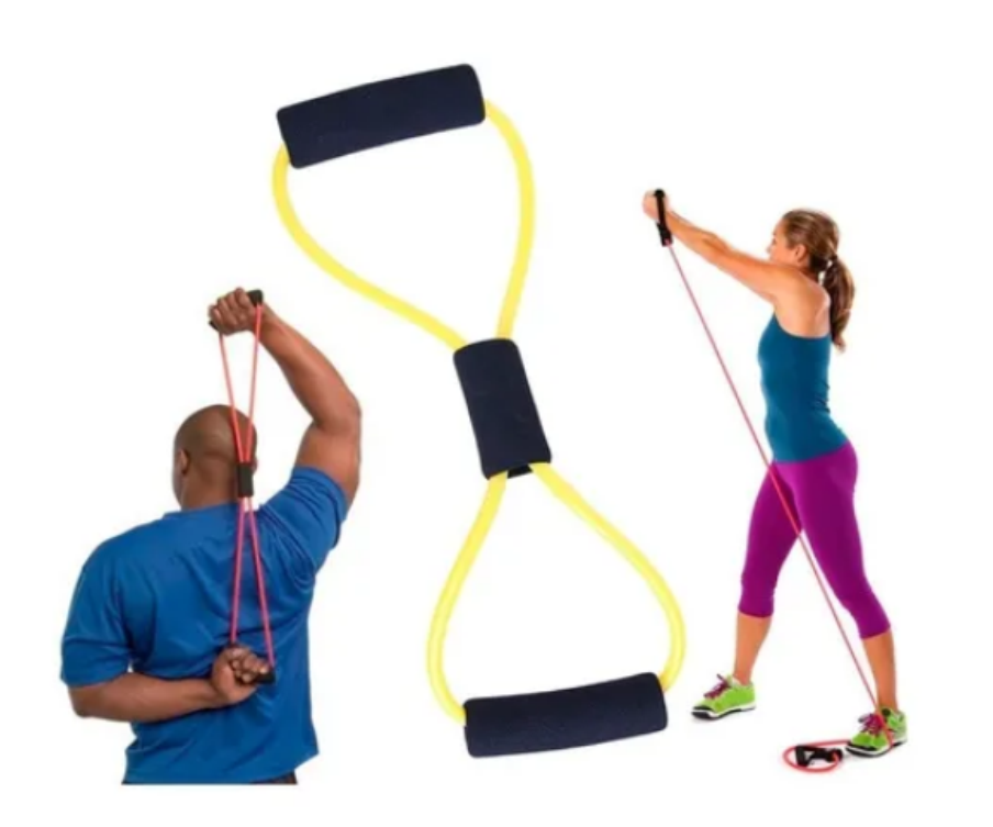 SET 2 BANDAS TUBULARES DE ALTA RESISTENCIA EN FORMA DE 8 TOTALMENTE CERRADAS CON AGARRES EN GOMA, FÁCIL DE USAR Y ALMACENAR.