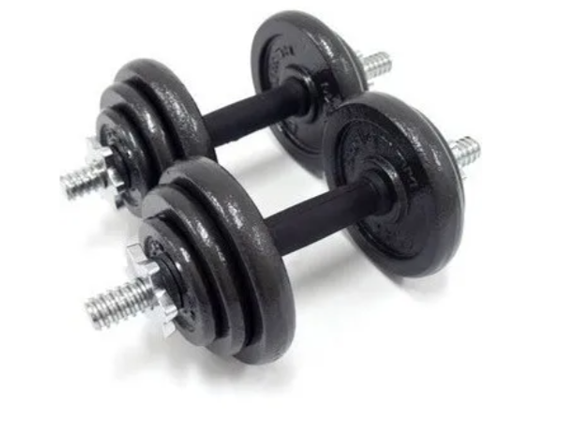 kit mancuernas de 20 kilos mas shaker o tarro de 700 ml doble compartimiento, antiderrame incluye agitador mezclador en acero inoxidable.
