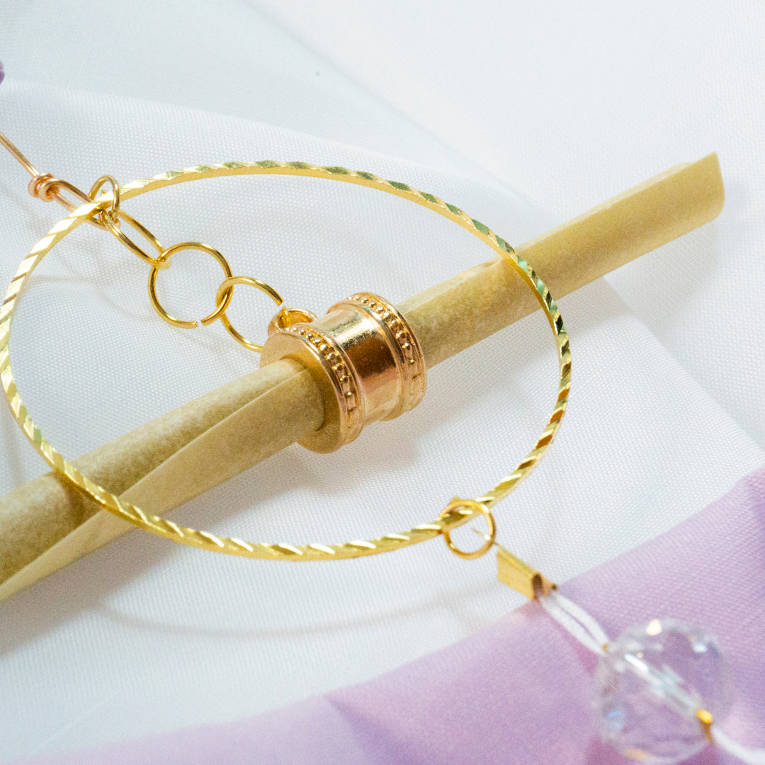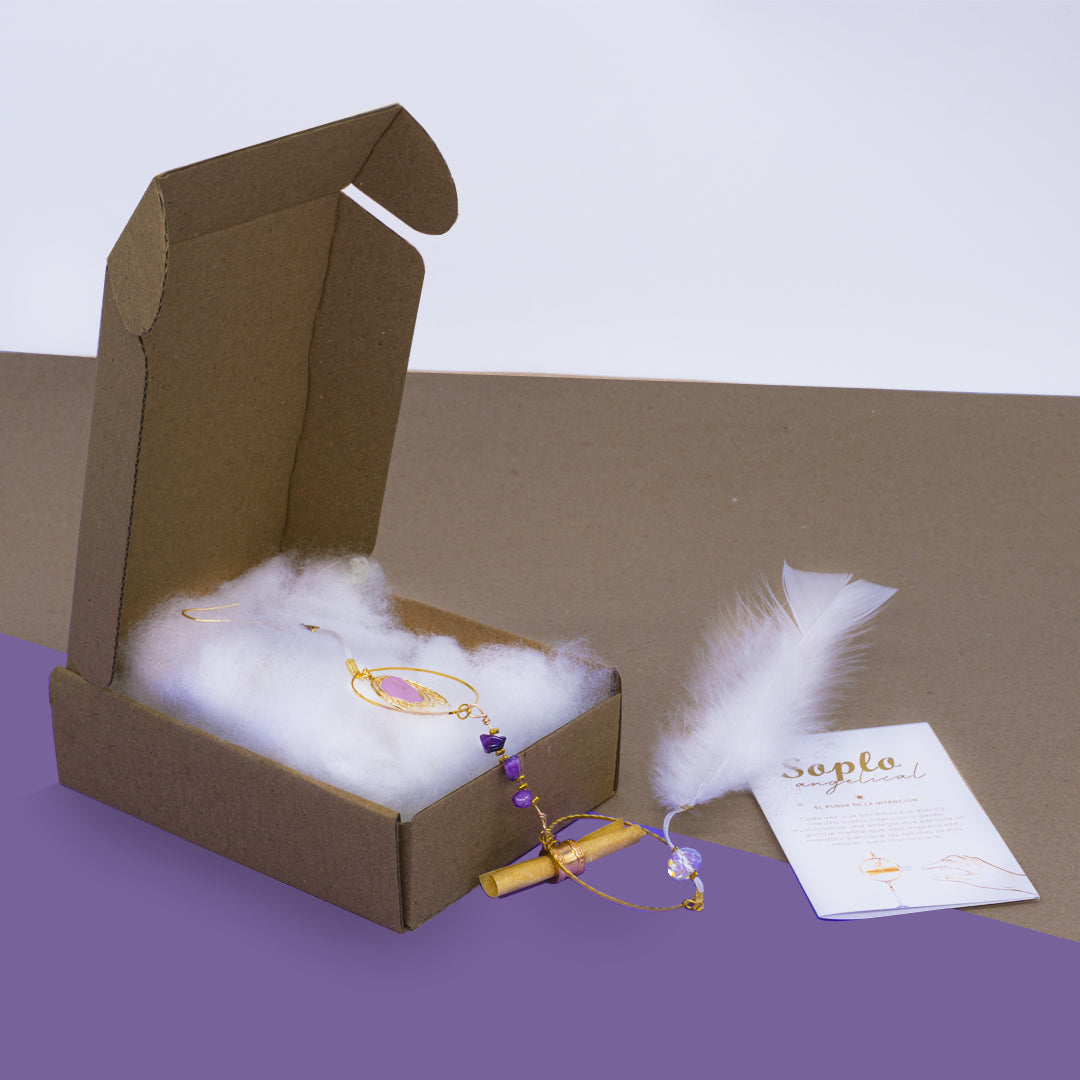 Un soplo angelical es un pendiente de peticiones que tiene un mensaje escrito colocado en un pequeño tubo en la mitad del pendiente.