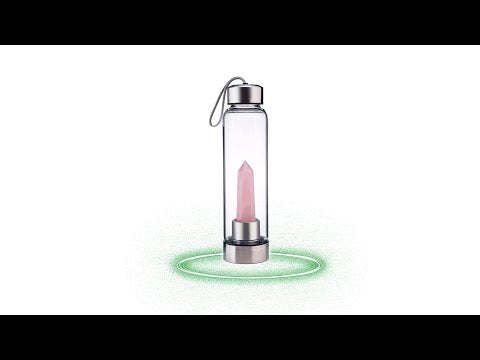 La botella de vidrio de agua con piedras de cristal de cuarzo totalmente naturales que cargan de forma holística agua para una mayor energía y rejuvenecimiento.